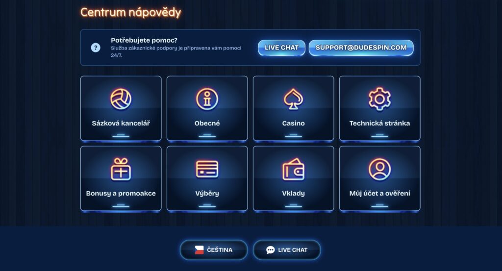 Zákaznická podpora v casinu DudeSpin
